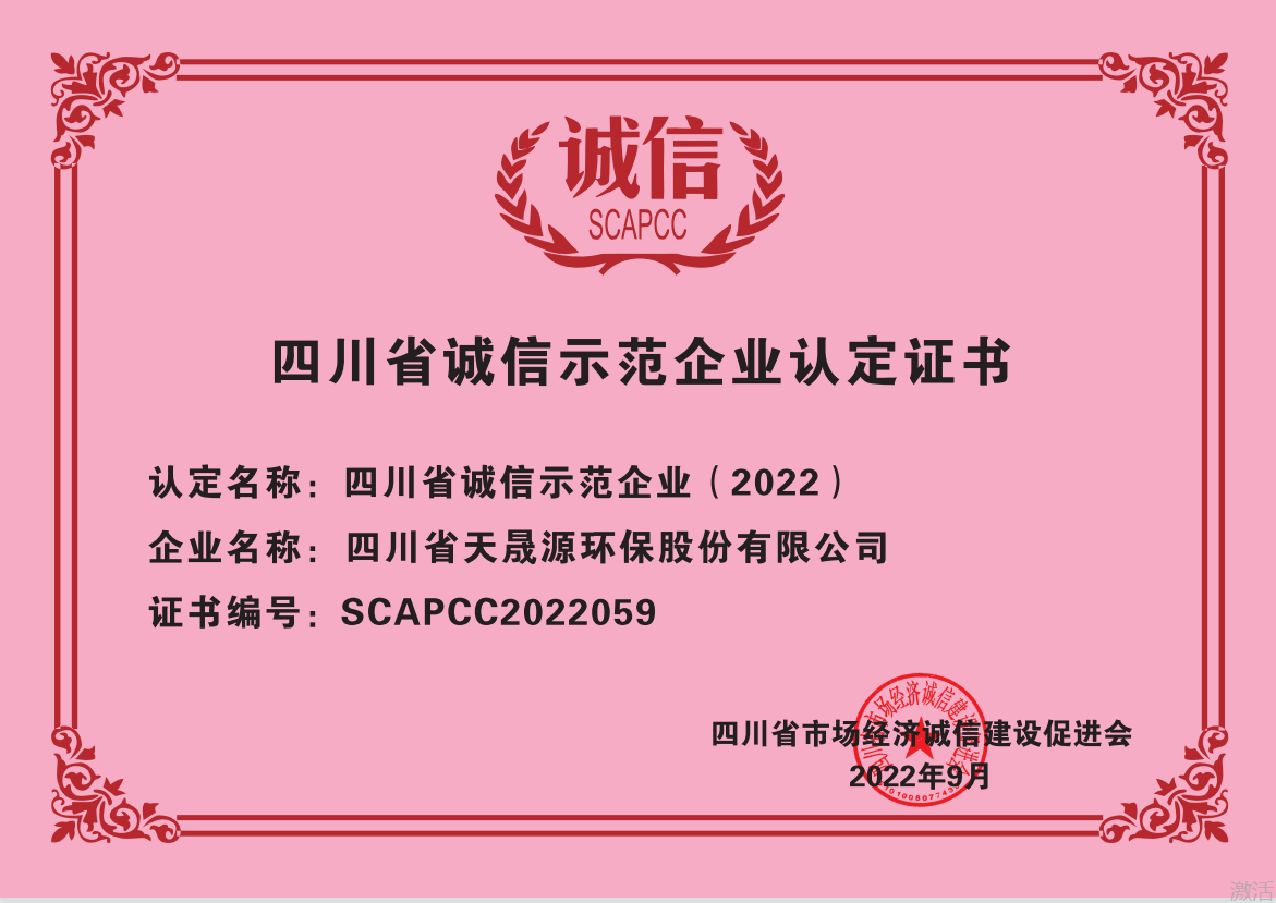 重諾守信,以誠興商——天晟源環(huán)保榮獲“守合同重信用企業(yè)”“四川省誠信示范企業(yè)”兩項稱號